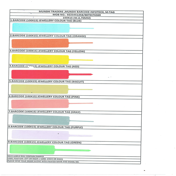 BAT TAG COLOR SAMPLES (100X15) MM WA 70 MM